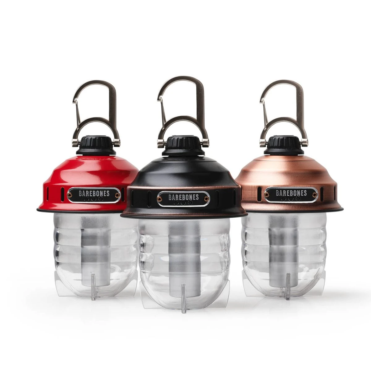 Our Barebones Beacon light comes with a smooth dimming feature that allows you to completely brighten your surroundings or simply set the mood. This portable light easily hangs with its carabiner top or stands on its sturdy base. The Beacon comes with a 30-inch cord for its rechargeable battery—which lasts 200+ hours on low or three hours on high. And thanks to a convenient battery life indicator, you’ll never be left in the dark.