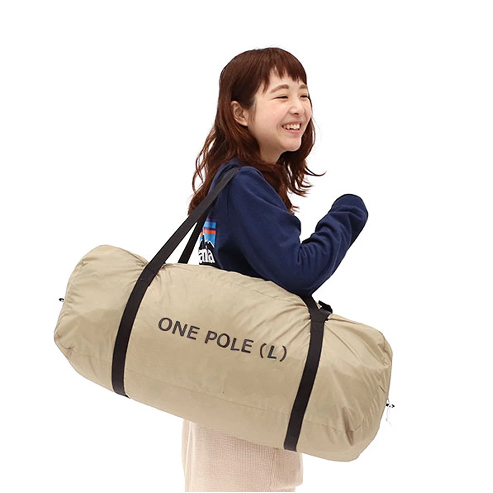A one-pole tent that is completed by driving a peg and launching a pole. Although it has a space where up to 8 people can relax, it has a simple structure and is lightweight and compact. It has a stylish appearance that stands out even at campsites and festival venues.