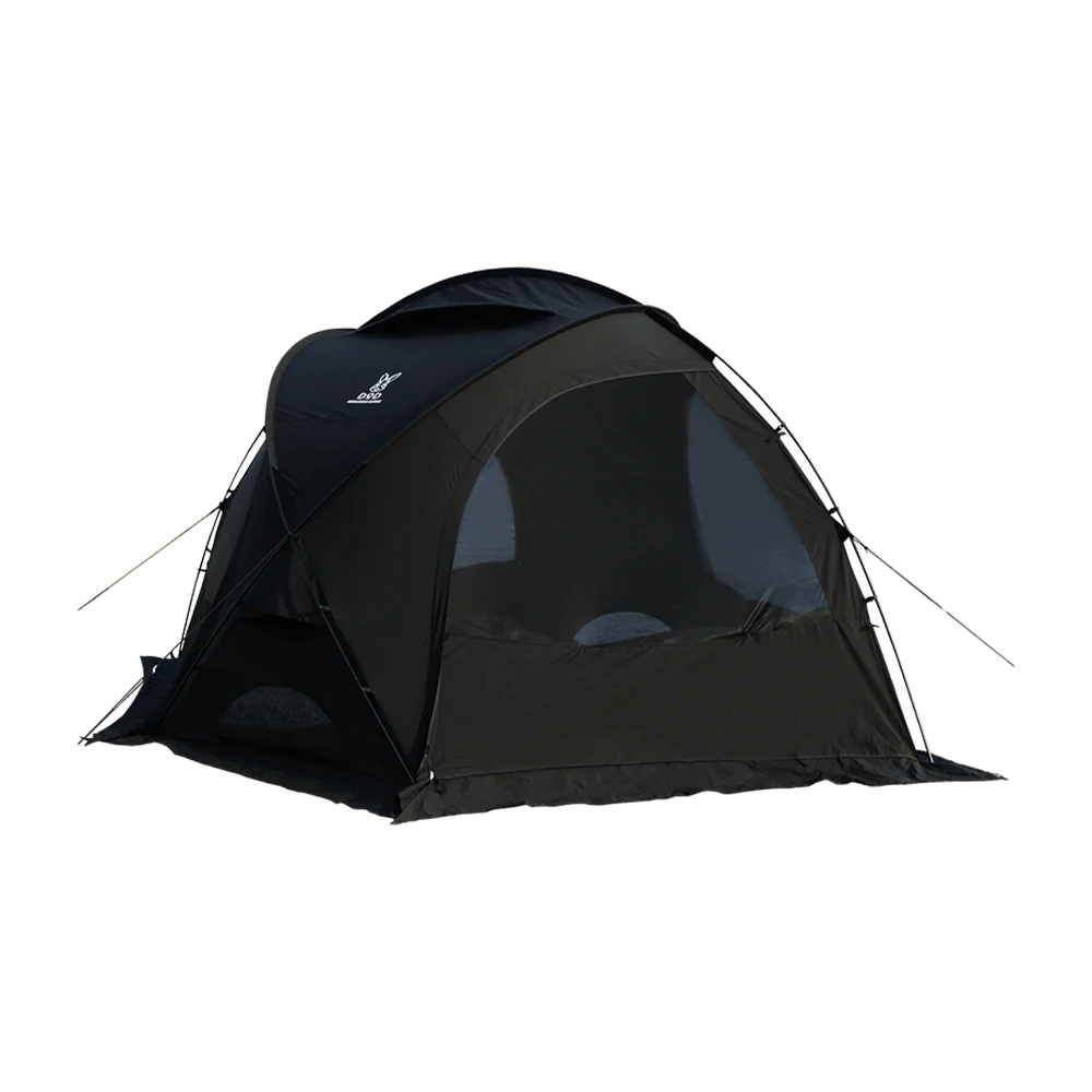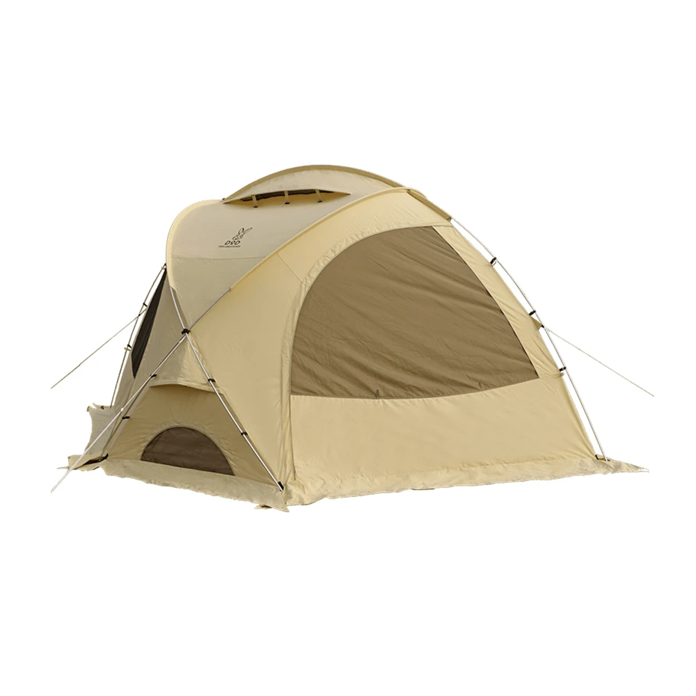 A large dome shelter that looks good on a bonfire. Polyester (polyester and cotton blend) material is used for the entire surface of the fly, and it is designed to be resistant to sparks. Not only can it be used as a floorless shelter, but it can also be used as a tent by attaching the attached floor. You can enjoy camping comfortably because it uses polycotton with high light-shielding and hygroscopic properties. Equipped with 4 entrances that can be opened wide, the entrance can be switched to full mesh. You can stay cool in the summer and warm in the winter