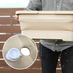 This is a multi purpose container with large capacity storage. The container lid can be used as a simple table, after use crush it with the basket and carry it compactly. It also can be used as a sink to cool the drinks by adding ice or washing dishes.