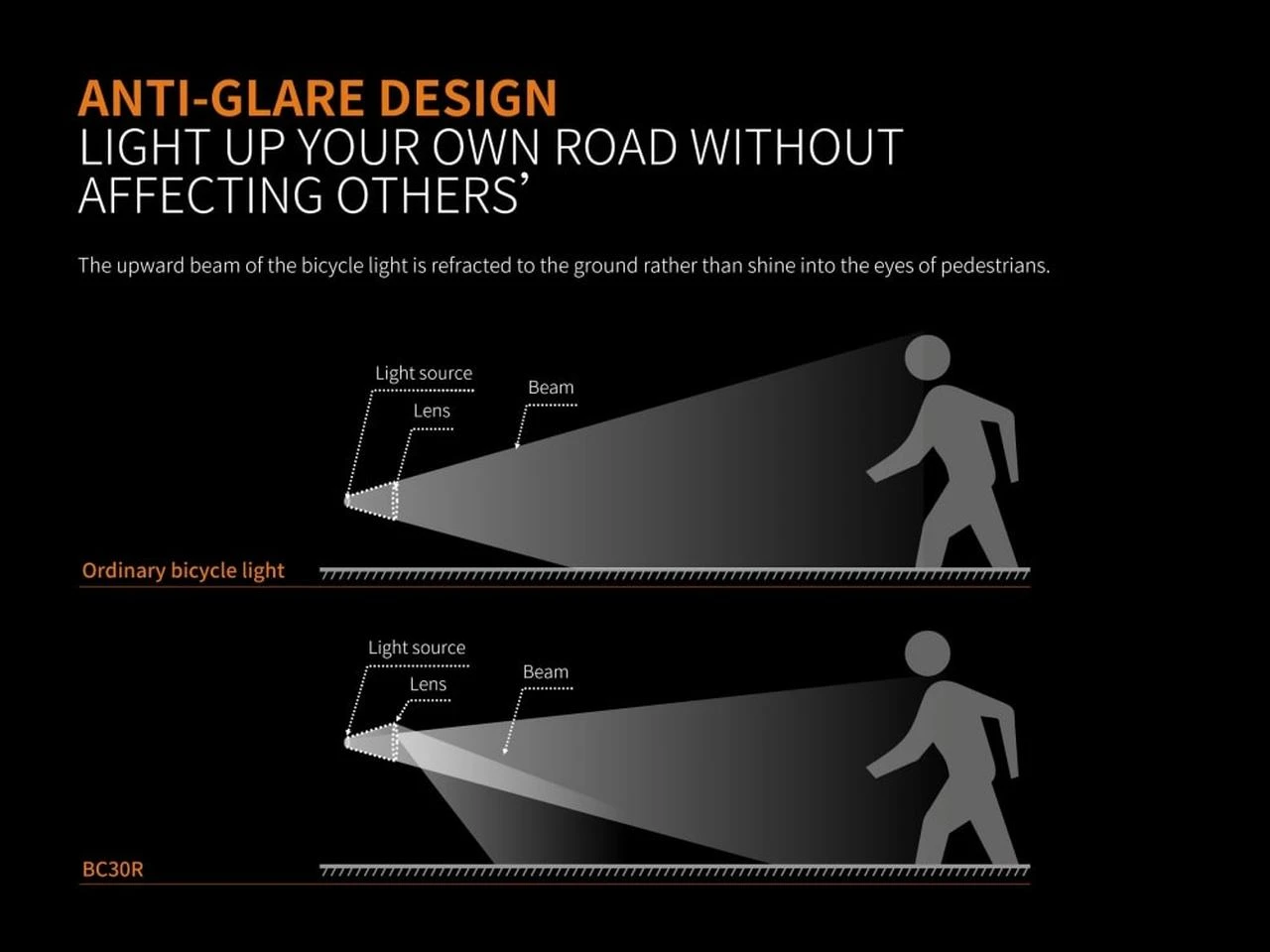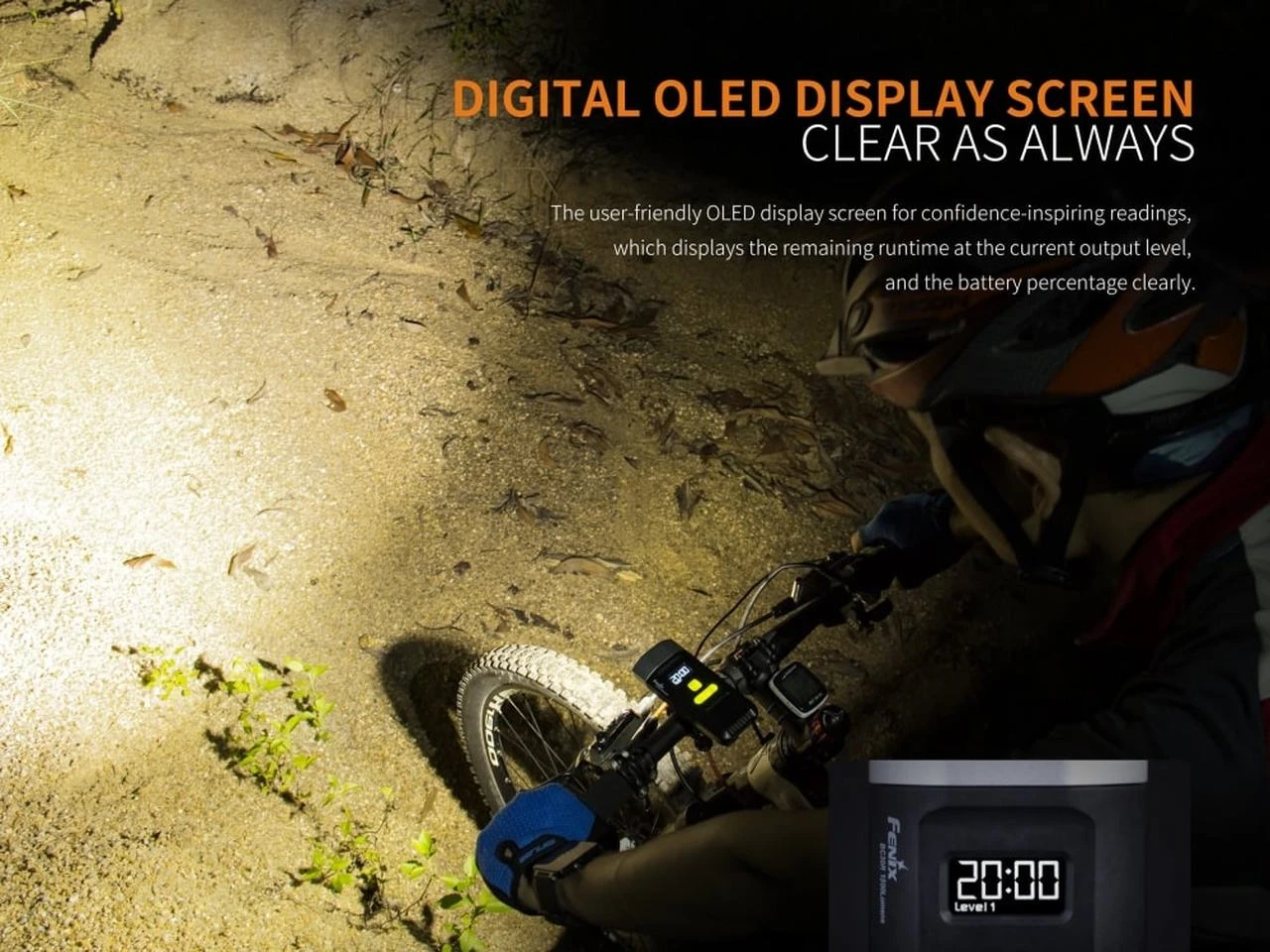 The ISPO (Asia) Award Gold Winner gets upgraded! The BC30R 2017 is a Micro USB rechargeable bicycle light features digital display screen for confidence-inspiring readings. It is fitted with two Cree XM-L2 T6 neutral white LED’s, and emits a max output of 1800 lumens with featured dual distance beam system. OLED display panel, which displays the remaining runtime at the current output level, and the battery percentage clearly, as riders need not only comfortable lighting, but also need to know the remaining runtime, whether during mountain biking or urban riding. A compact body with built-in rechargeable batteries, upgraded quick-release fitment, newly designed remote pressure switch and full-metal housing for better dissipation allow this versatile light to illuminate your trails confidently.