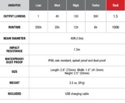 The Fenix CL20R rechargeable camping lantern emits a maximum 300 lumens from its built-in 1600mAh battery and neutral white LED. This lantern has six lighting modes, including 4 white light levels and red and red flashing. Charging and battery level indicators help you make sure you have the power you need. The magnetic bottom and hanging hook make it easy to light any situation. Rain resistant, splash proof and dust proof, the light weight and durable CL20R lantern is the perfect camping companion.