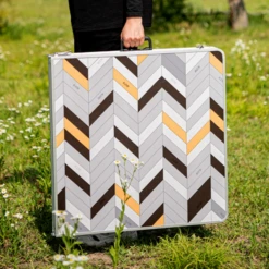 - Dimensions :In use – 120x60x(h)40/66cm / When stowed – 60x60x6.6cm