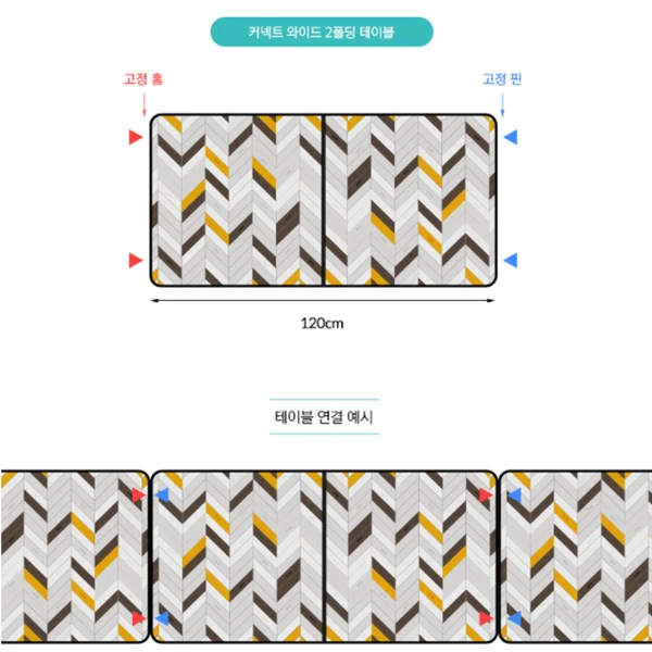 This is a folding 2-fold table for camping that provides ample space and is easy to install and store. It has a connect system that can be used by connecting two or more tables so that several people can enjoy it together. It is a wide-type two-folding table with ample space, and it has high space utilization and can be used solidly with PLYWOOD material. This is a 2-fold camping table made of an aluminum frame with light weight and strong support.