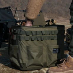 - The Field Multi Basket comes with buttons on the four sides, allowing you to hang a disposable bag with a handle. This feature provides versatility as the bag can be used as a laundry basket or a trash can, keeping your campsite clean and organized.