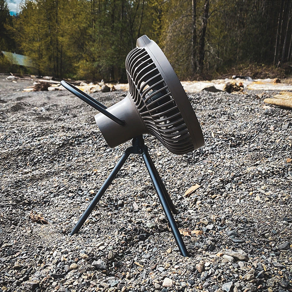 CLAYMORE’s V600+ is a wireless air circulator fan. With a large capacity battery, Li-ion 7,800mAh, it can be used for up to 32 hours with a single charge. The wind speed can be adjusted in 4 levels and the safety cage is detachable for dust-free storing. Easy to carry with the attached handle and can be used in countless ways with the attachable tripod.