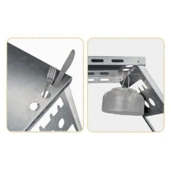 - Laser-cut utility slots of varying shapes on all 4 sides to hold cooking items and outdoor tools