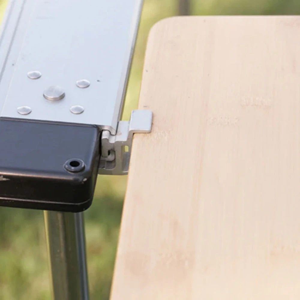 The IGT SLIDE TOPLONG HALF is made of sturdy and sleek bamboo in an updated finish. Use it to easily add 22 inches of extra space to your outdoor kitchen and dining space. The IGT Slide Toplong Half does not require a hook, but slips into the ridges along the outside of the frame. Compatible with the IGT 4 Unit Sitting Set.