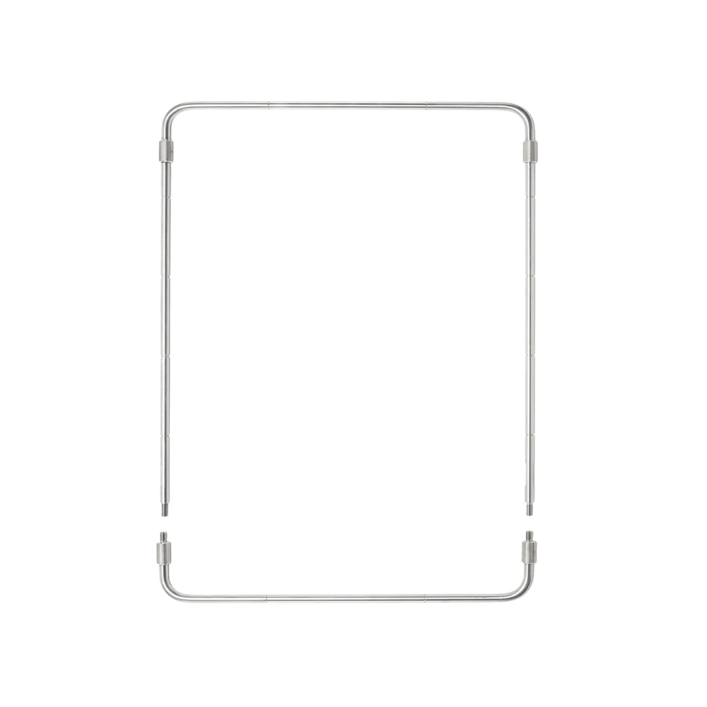 The TTA (Table Top Architect) Unit Frame is a component of the IGT system and TTA series that can be used as a shelf for storage. Kitchen tools can be hung on the frame, and it is compatible with the Shallow Mesh Tray Half Unit and Deep Mesh Tray Half Unit for additional storage and organizing. To use, connect the frame ends into two TTA Clamp Tools and adjust the tension.